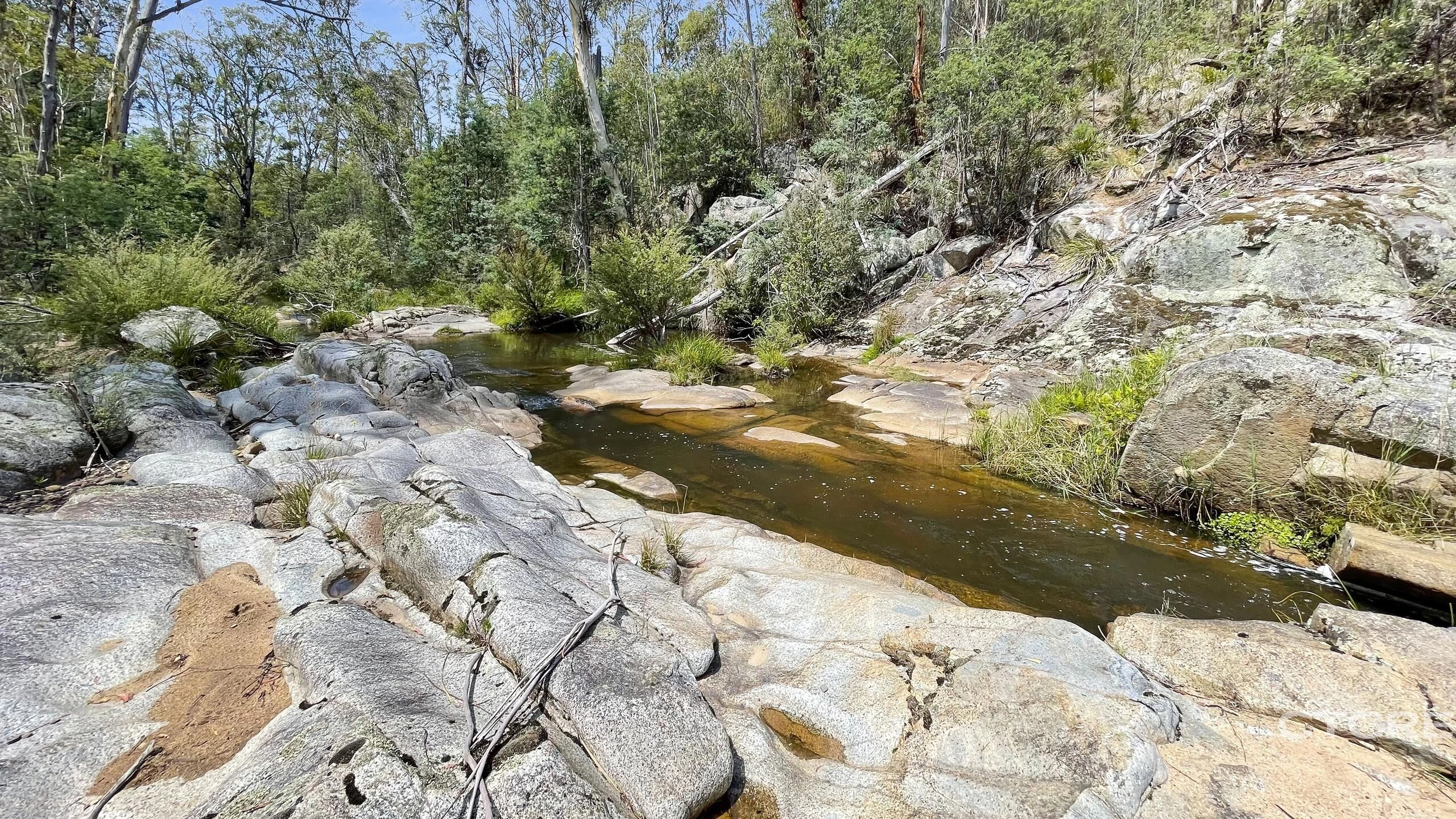 A modern Colorbond shed with concrete floor (approximately 6x6m) and 3x6m(approx.) carport alongside provide excellent storage. The shed has a basic solar and battery storage system providing lighting and 240 volt power and there is a rainwater tank alongside with a single tap. From the shed there are views across the river to the adjoining property. A series of swimming holes just below the homesite are a great place to cool off on those warm days.