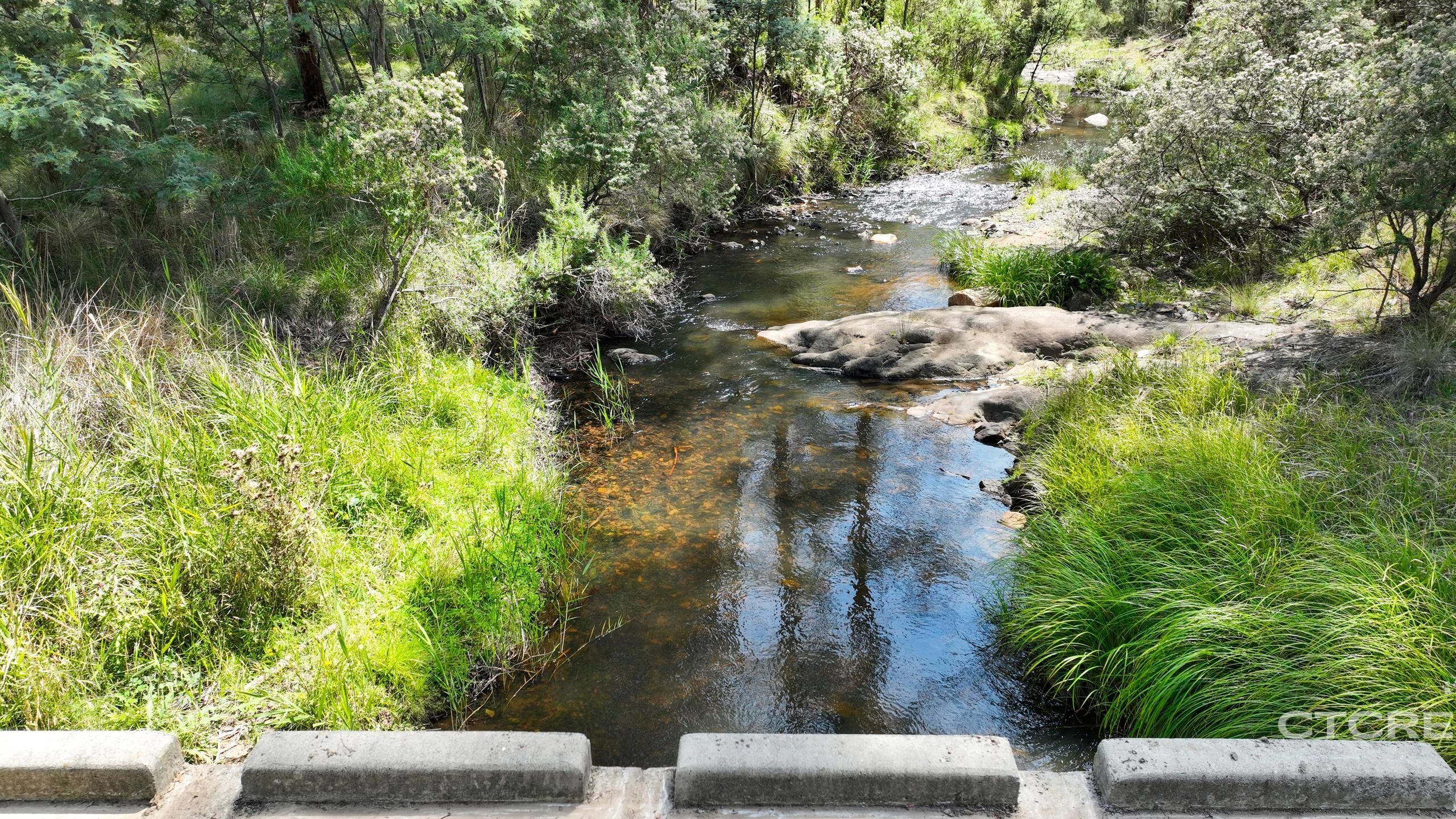 Warm Corners Track is a short all-weather Council maintained road which crosses a concrete bridge over the Jingalala River where it ends at the property. An all-weather access track runs alongside the river, past a small stock shed, leading to the original homesite on the property. The original off-grid home unfortunately burnt down in 2019, the result of a suspected solar electrical fault. The concrete slab remains along with a feature wall and remnants of an orchard.