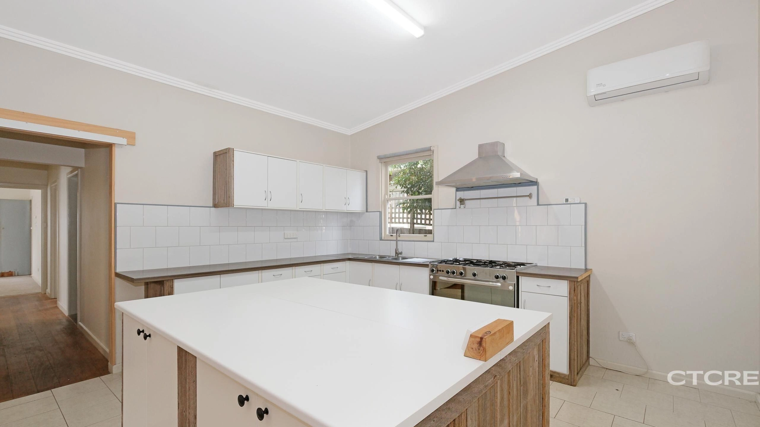 Additional features include split-system air conditioning for year-round comfort, a cozy wood fire for those colder months, and 900mm stainless steel gas cooking, making it a dream for anyone who loves to cook. The spacious kitchen also includes a large island bench, perfect for meal preparation and casual dining.